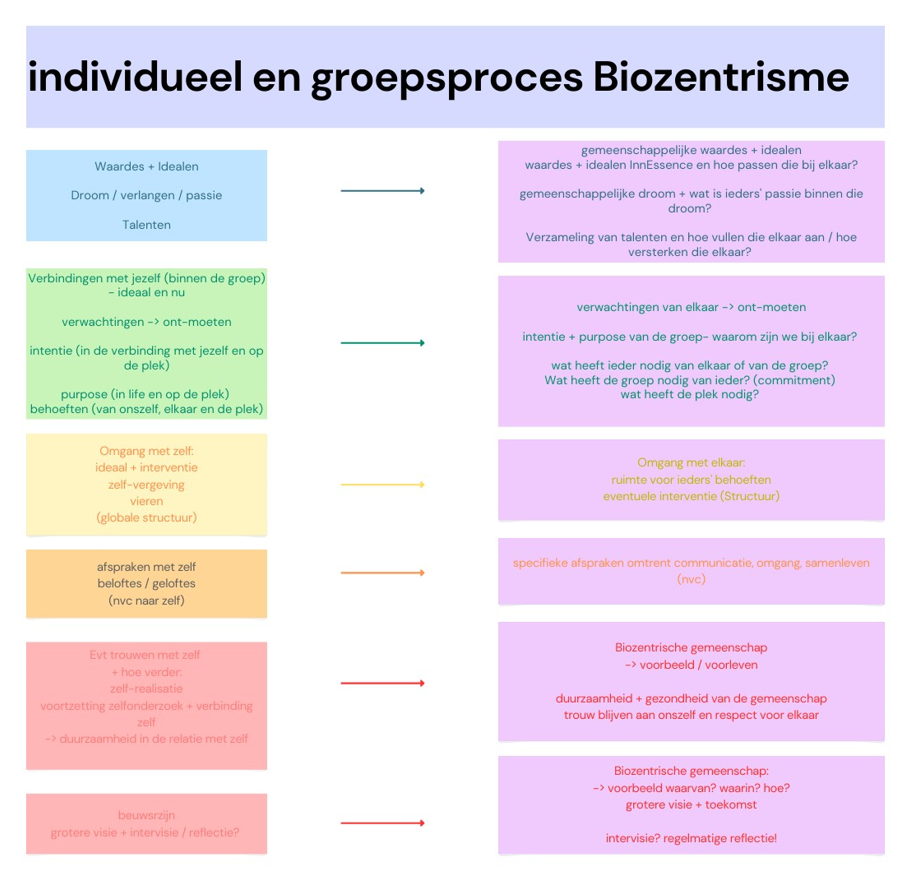 Co-creating a Biozentric community is both a group (connection) process and an individual (self-connection and) growth process that develop simultaneously.